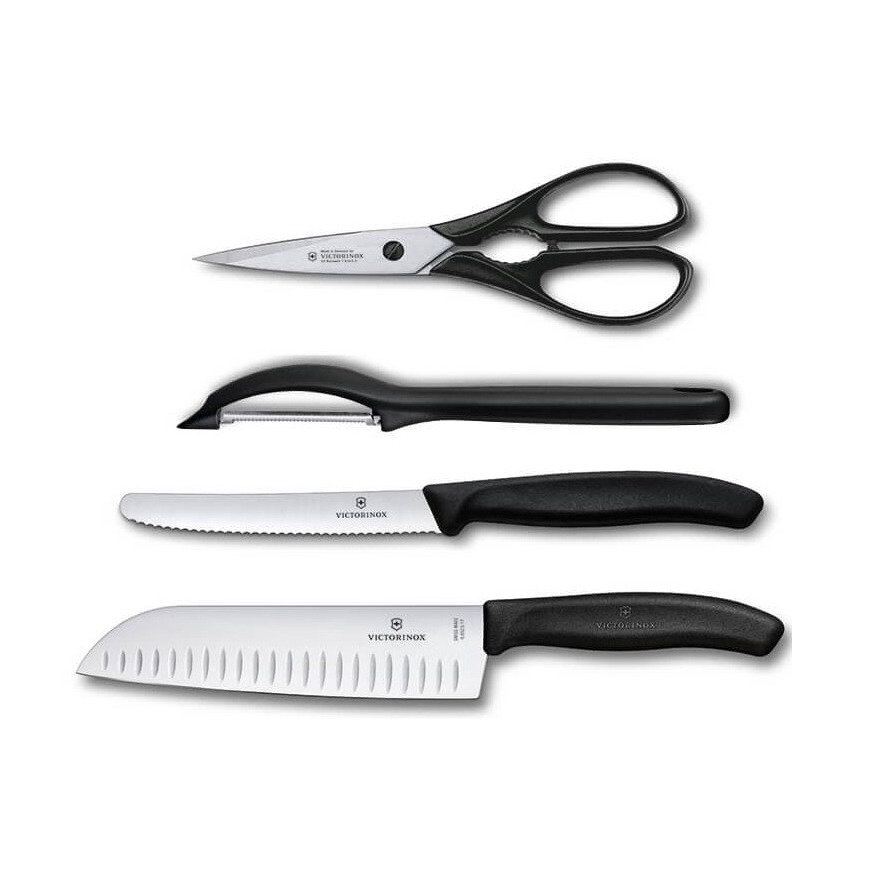 Набор кухонных ножей Victorinox Swiss Classic, компл.: 4 шт., с подставкой ассорти/чёрный