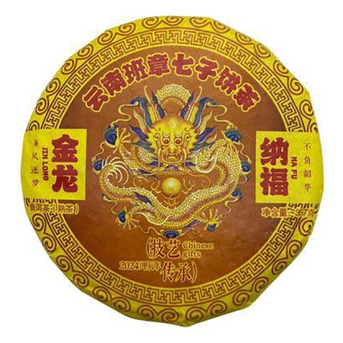 Чай Пуэр Шу 357гр 2024г Золотой Дракон Нафу фабрика Гу И блин Черный