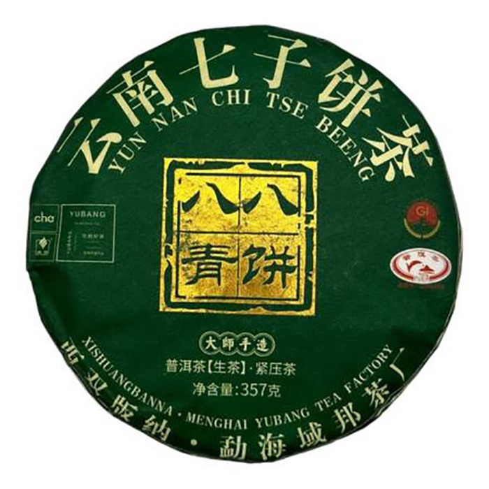 Чай Пуэр Шен 357гр 2021г Ба Ба Цин Бин Ю Бань блин Зеленый