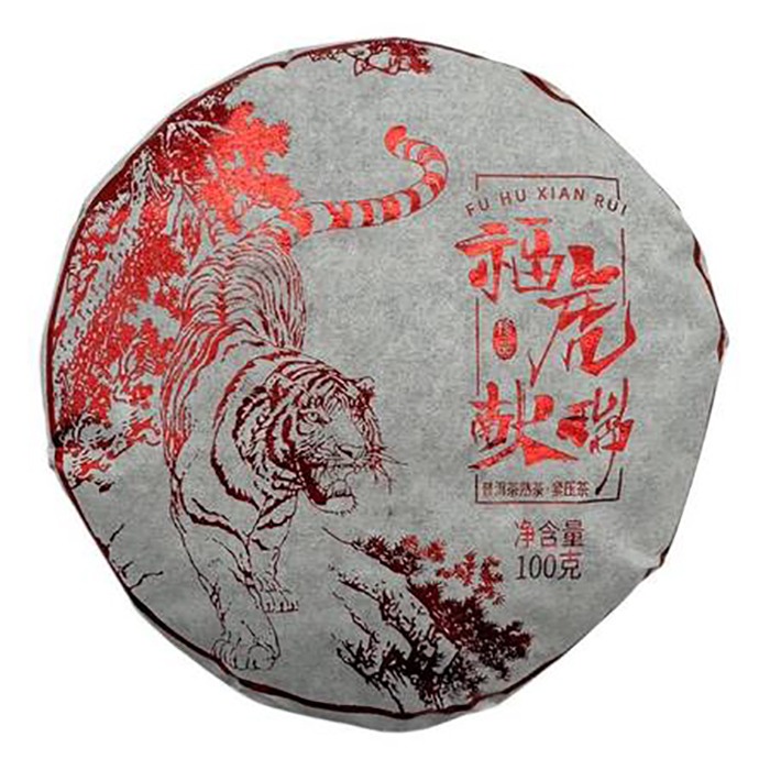 Чай Пуэр Шу 100гр 2022г Фу Ху Сянь Руй фабрика Гу И мини блин Черный