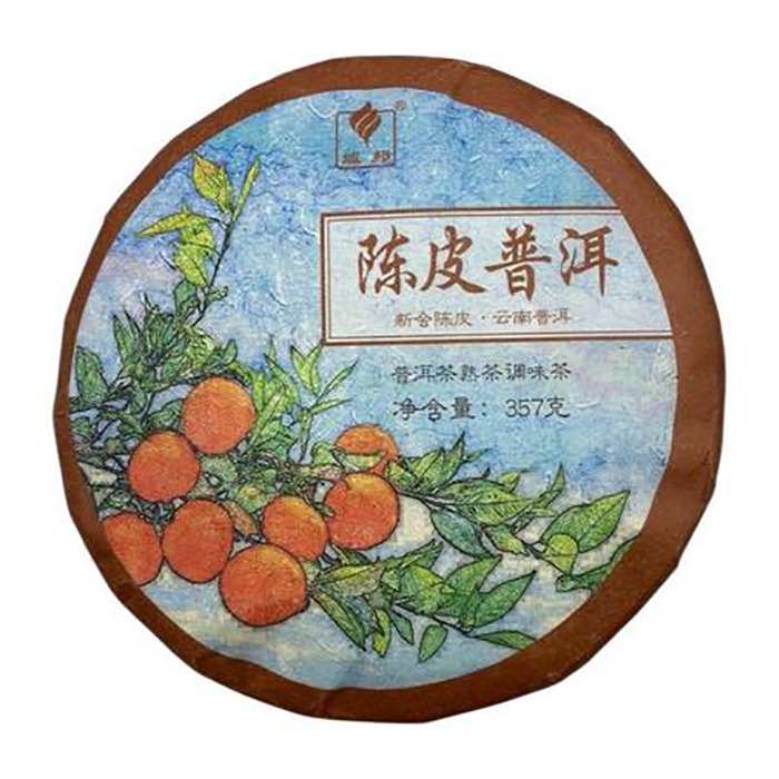 Чай Пуэр Шу 357гр 2024г с цедрой Мандарина фабрика Гу И блин Черный