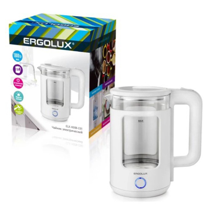Электрочайник Ergolux ELX-KG08-C01 1800W 1.8л белый (1/12)
