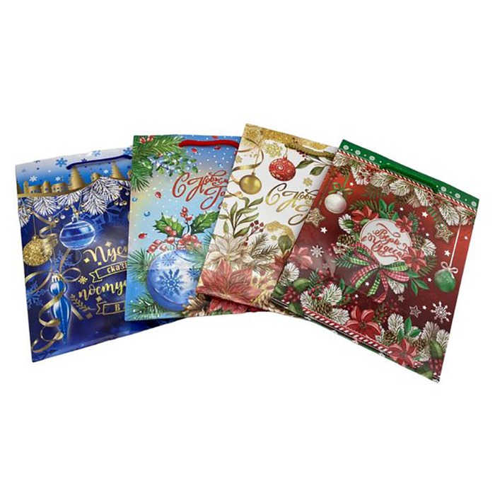 Пакет бумажный с ручками 18х10х23 из ламинированной бумаги Новый Год