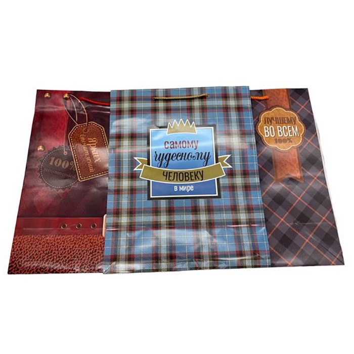Пакет бумажный с ручками 26х13х32 из ламинированной бумаги Мужской микс