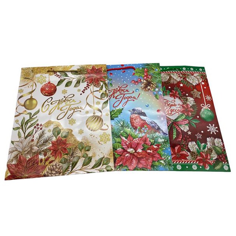Пакет бумажный с ручками 26х13х32 из ламинированной бумаги Новый Год