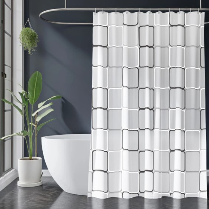 Штора для ванной Geometry Eco-03 180x180cм,70г/м2, квадраты беж