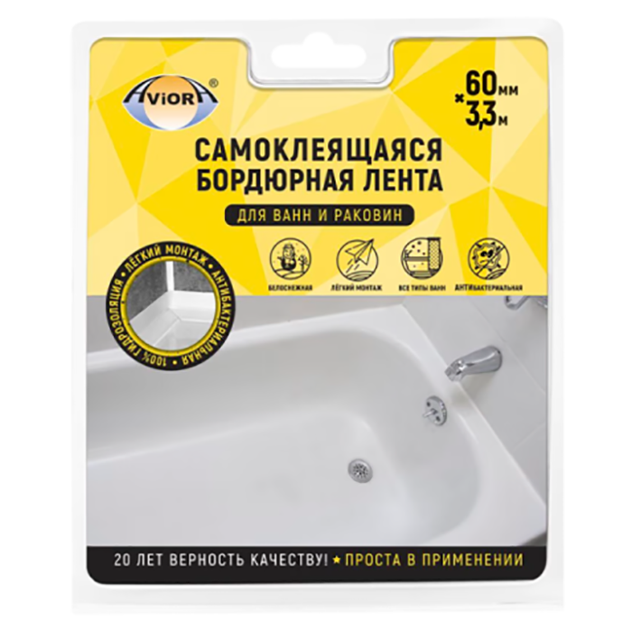 Бордюрная самоклеящаяся лента для ванн и раковин, 60 мм х 3,35 м, AVIORA (1/8)