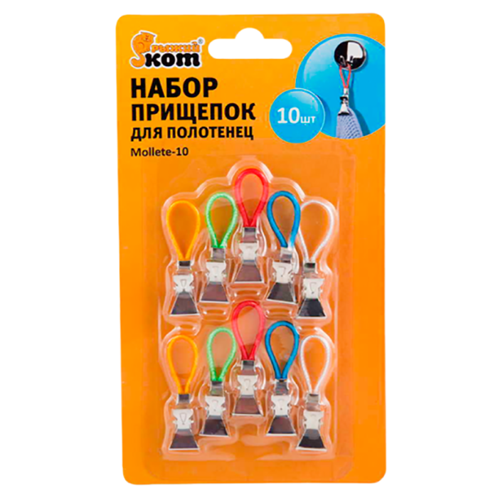 Прищепки для полотенец Рыжий кот 1.5х5.6см 10шт. (1/12/144)