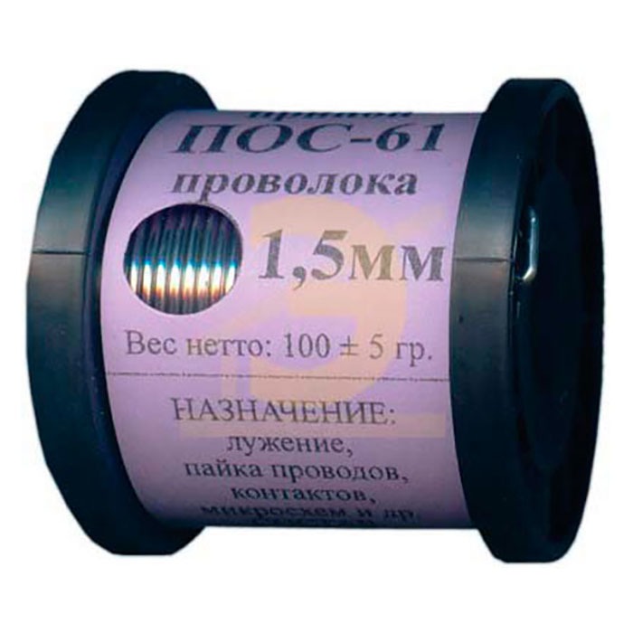 Припой ПОС 61 на катушке 100гр. 1,5мм без канифоли