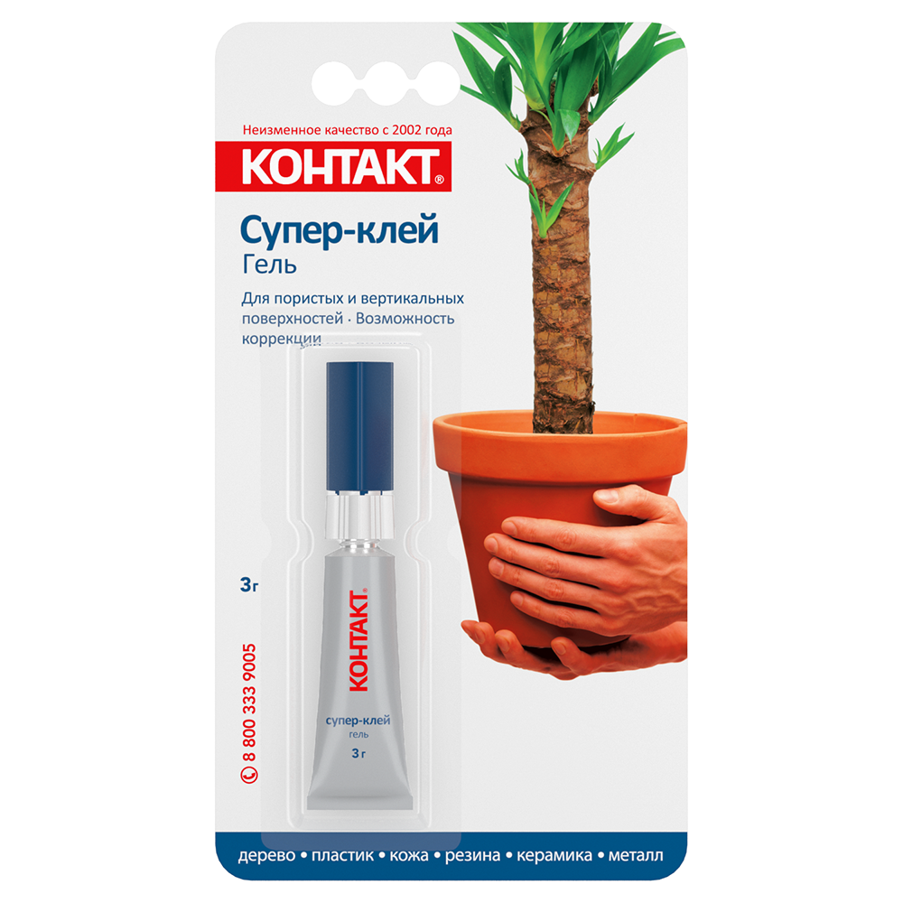 Описание Супер-клей "КОНТАКТ" гель, 3 г, бл., арт. КМ 120-Б03 ГЛ, шоу-бокс, шт
