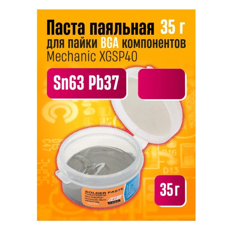 Паста паяльная Mechanic XGSP40 (35 г, среднетемпературная 183°C)