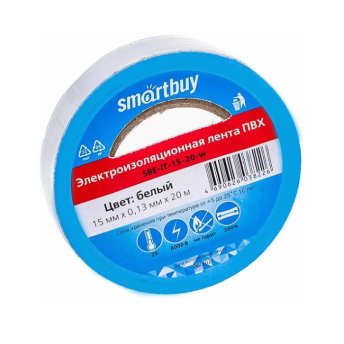 Изолента Smartbuy, 0.13х15мм, 20 метров, белая (SBE-IT-15-20-w)