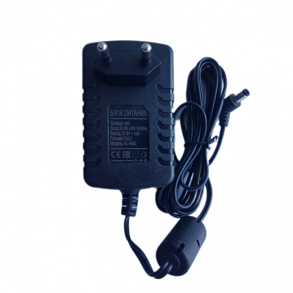 Блок питания импульсный 8В, 3,6A, 29Вт (штекер угловой 2,1х5,5мм., в розетку)