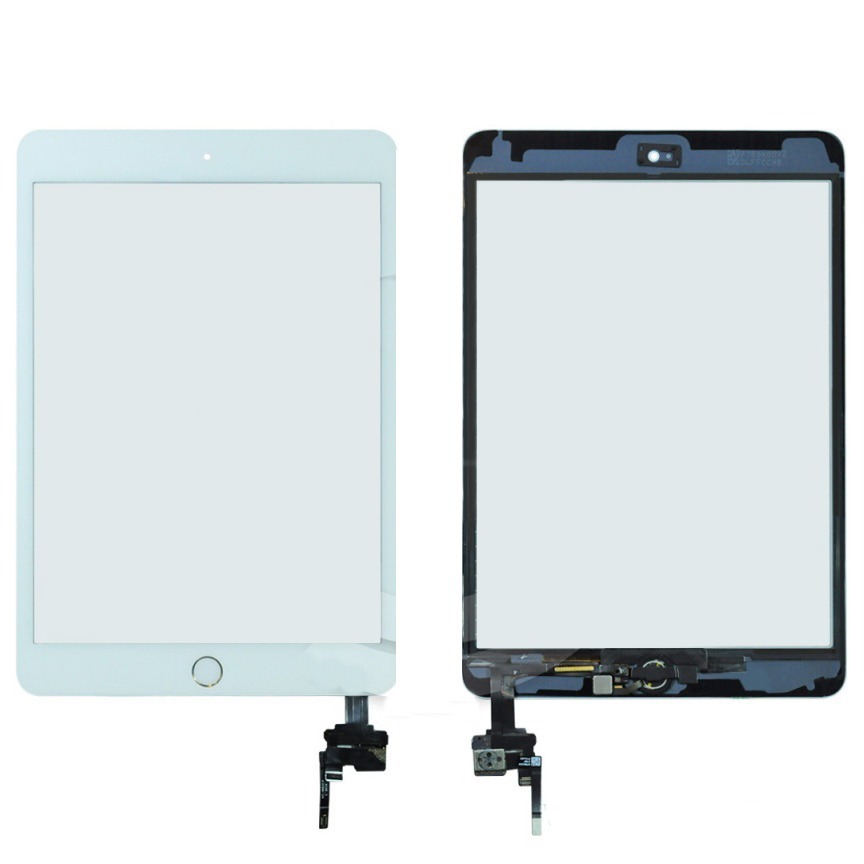 Тачскрин для iPad mini 3 (с разъемом) + золотая кнопка HOME (белый)