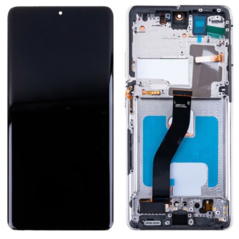 Дисплей для Samsung Galaxy S21 Ultra (G998B) модуль с рамкой Серебро - (OLED) (Full Size)