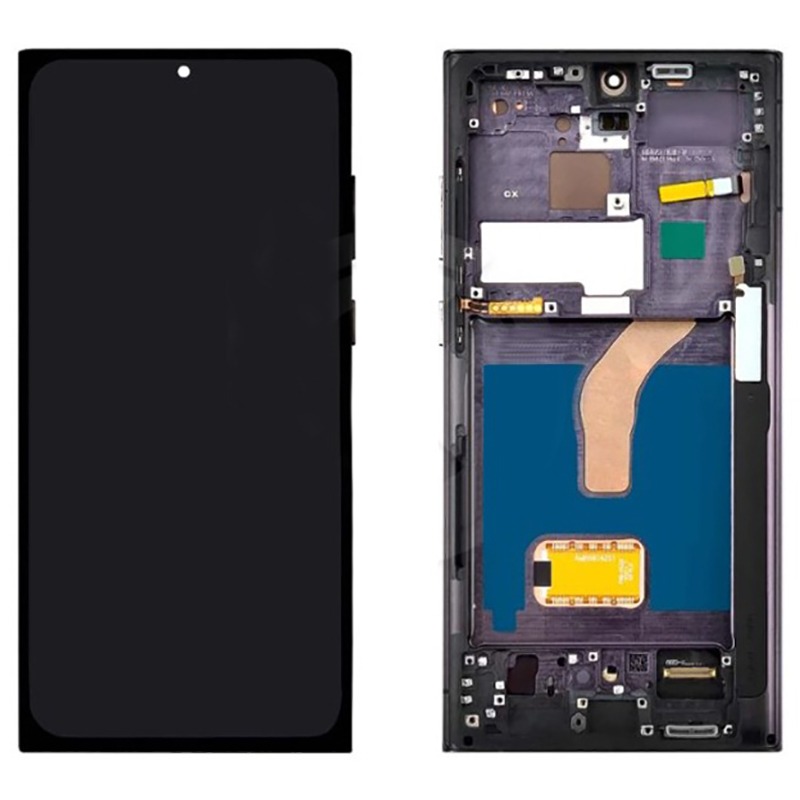 Дисплей для Samsung S908B Galaxy S22 Ultra в рамке + тачскрин (черный) (Soft OLED)