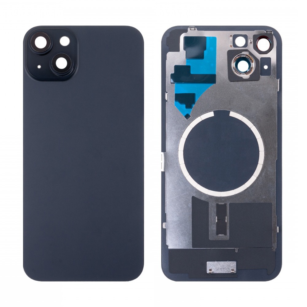 Задняя крышка для iPhone 15 Plus (A3094) в сборе со стеклом камеры Черный (стекло, монолит, MagSafe, логотип) - Премиум