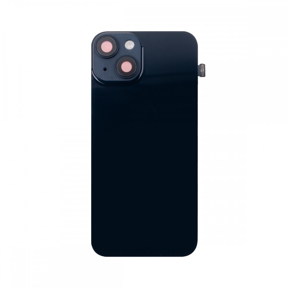 Задняя крышка для iPhone 14 (A2883) в сборе со стеклом камеры Черный (стекло, монолит, MagSafe с оригинальным шлейфом, логотип) - Премиум