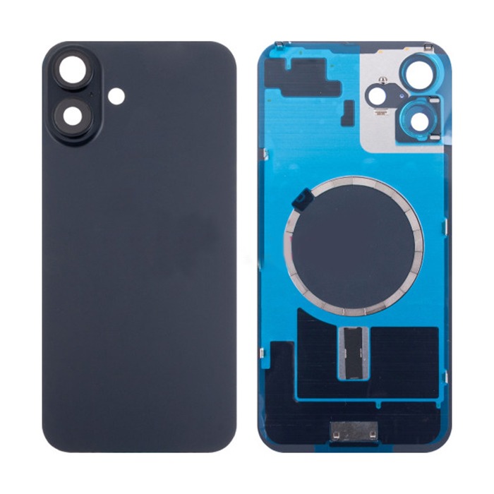 Задняя крышка для iPhone 16 Plus (A3290) в сборе со стеклом камеры Черный (стекло, монолит, MagSafe, логотип) - Премиум