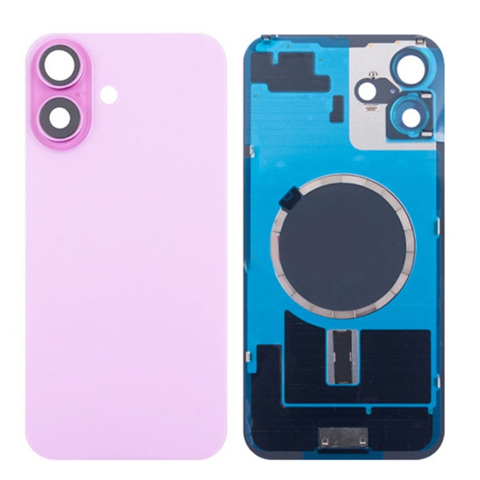 Задняя крышка для iPhone 16 (A3287) в сборе со стеклом камеры Розовый (стекло, монолит, MagSafe, логотип) - Премиум