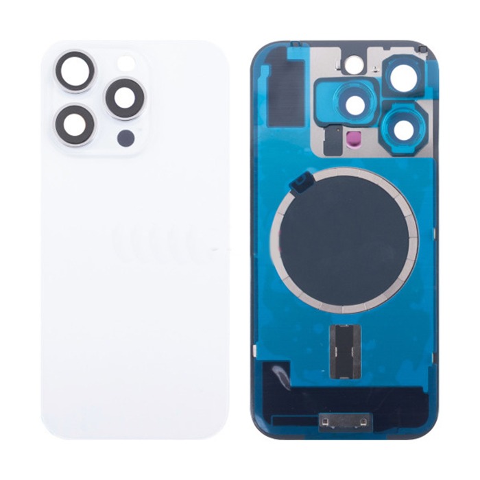 Задняя крышка для iPhone 16 Pro (A3293) в сборе со стеклом камеры Белый (стекло, монолит, MagSafe, логотип) - Премиум