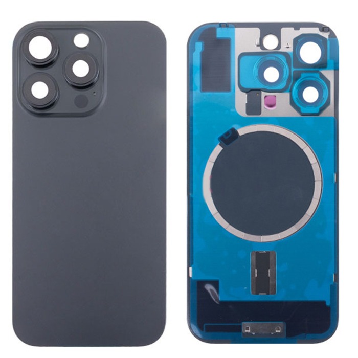 Задняя крышка для iPhone 16 Pro (A3293) в сборе со стеклом камеры Черный (стекло, монолит, MagSafe, логотип) - Премиум