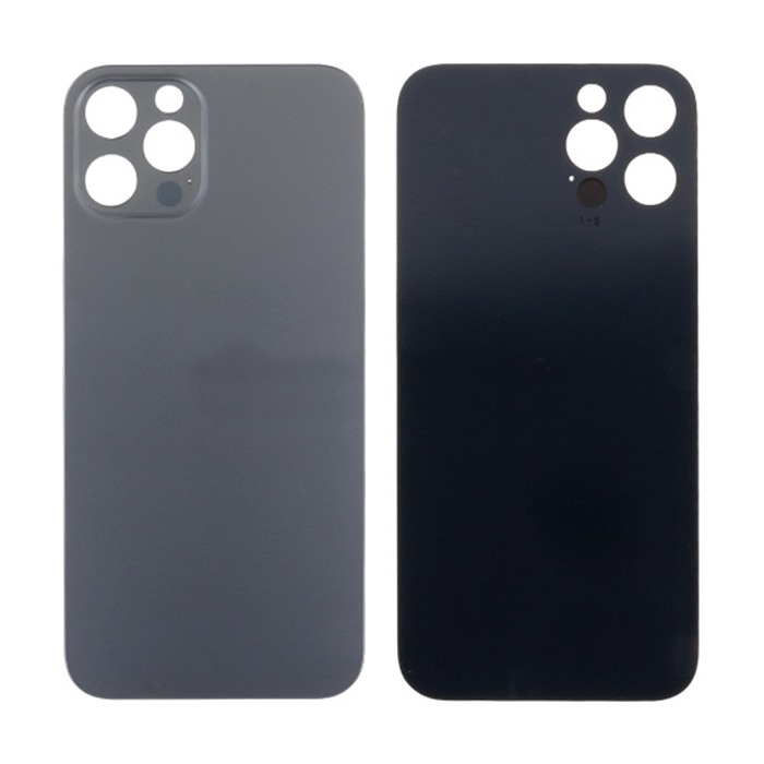 Задняя крышка для iPhone 12 Pro Max (A2411) Серый (стекло, узкий вырез под камеру, логотип) - Премиум