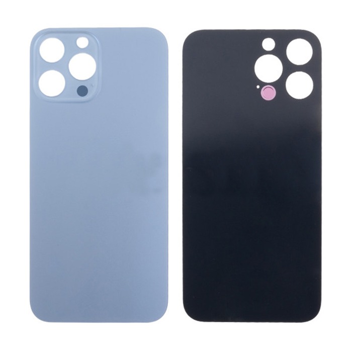 Задняя крышка для iPhone 13 Pro Max (A2645) Голубой (стекло, узкий вырез под камеру, логотип) - Премиум