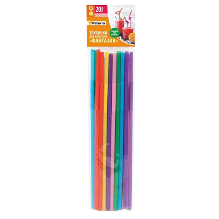 Трубочки для коктейлей Paterra ФАНТАЗИЯ d=5 мм х 210 мм цветные (1/72)