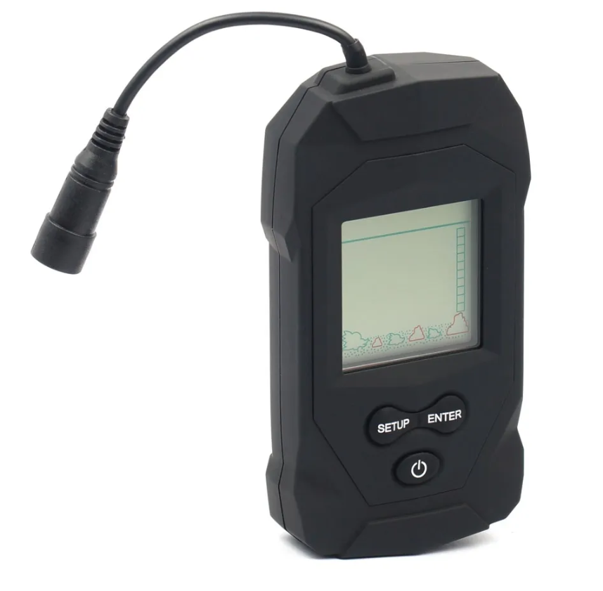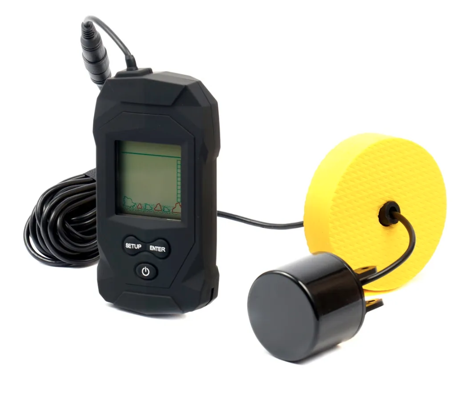 Рыбопоисковый ЭХОЛОТ (LCD с подсветкой), ударопрочный корпус. Проводной датчик (8 метра): 1 луч, 45 градусов. Питание: 4 батарейки AAA.